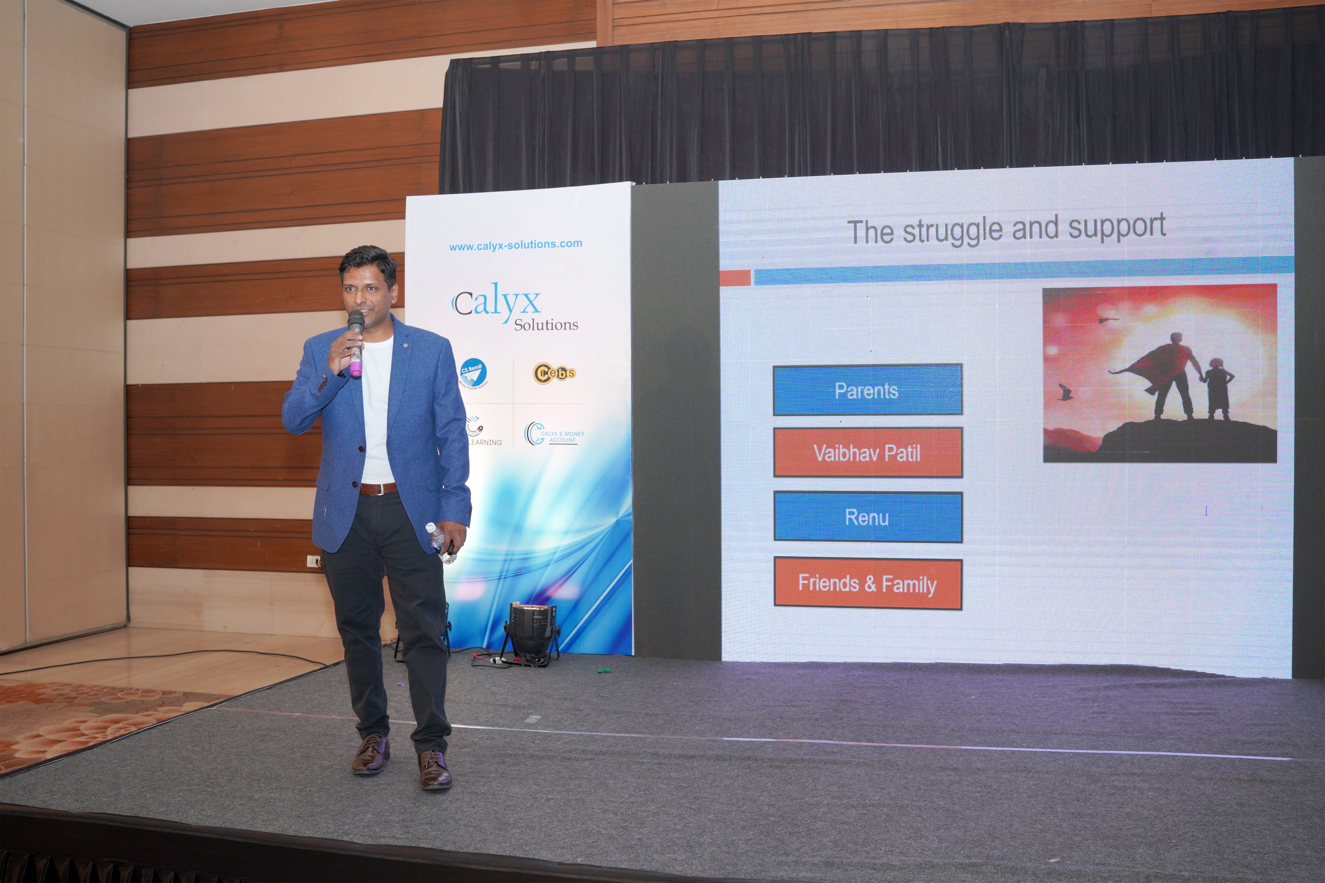 The director, Mr Vishal Patil, was requested to say a few words. From the minute he took the mic, the atmosphere turned sentimental as he started narrating the hardships he experienced during the journey of Calyx Solutions and the contribution of his family members.