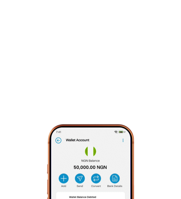 Experience the seamless journey of managing global finances right within the app.